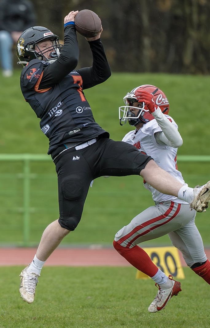 Die Vorsaison bot echte Highlights (Auswärtssiege in Solingen und Essen, Heimsiege gegen Troisdorf und Köln). Aber auch das harte „Los“, in der regionalen Gruppe ausgerechnet gegen die beiden Top-Mannschaften der Liga 2025 – Aufsteiger Minden Wolves und Playoff-Finalist Bielefeld Bulldogs -gleich zwei Mal spielen zu müssen.