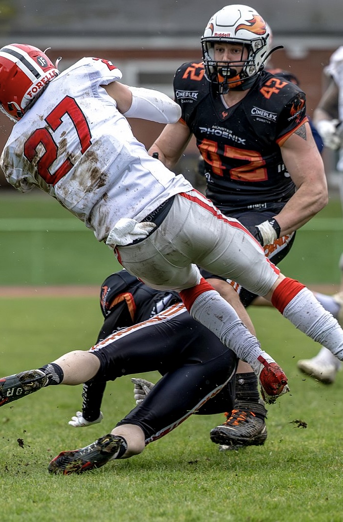 In der Defense überragten Defensive End Tom Wolters an der Line und Arne Gehrt im Defensive Backfield – wobei die Performance der Defense insgesamt extrem stark war. So zeigte unsere „D“ beispielsweise im Spiel gegen die Minden Wolves die beste Leistung aller Teams der Liga.